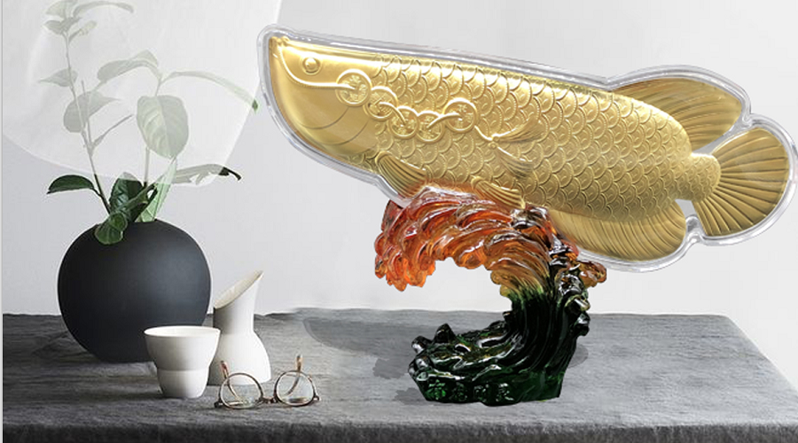 • 老鳳祥鴻運錦鯉足金國潮家具擺件